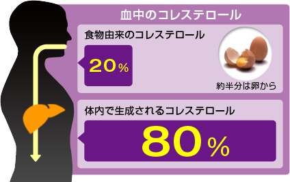 人間の血中にあるコレステロールのうちの80%が体内(肝臓)で生成されたコレステロール